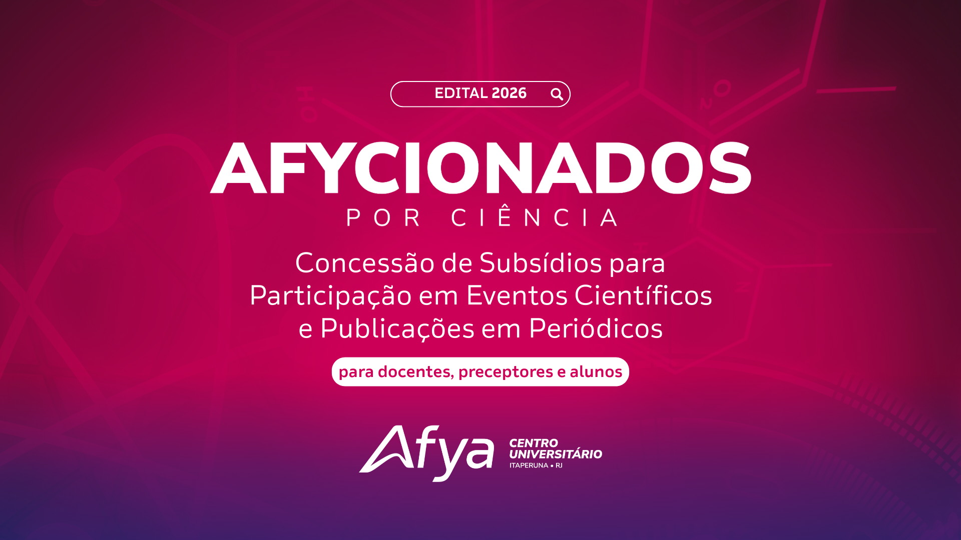 O Afya Centro Universitário de Itaperuna lançou o Regulamento 2026 do Programa Afycionados por Ciência, iniciativa que concede subsídios para participação em eventos científicos e publicações em periódicos.